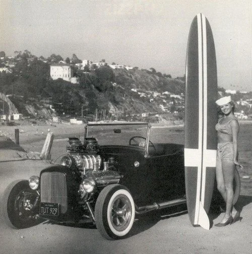 Images here are mostly from the US west coast, Hawaii and Australia…from a time when surfing was still new and exciting. Humans have always been attracted to the sea but surfing was and is, for many, a mystical experience…about as close as one can get to a true communion with the rhythm of mother earth. And the trip to and from the beach with friends, wind in the hair and the road slipping by underneath - that was pretty cool too…